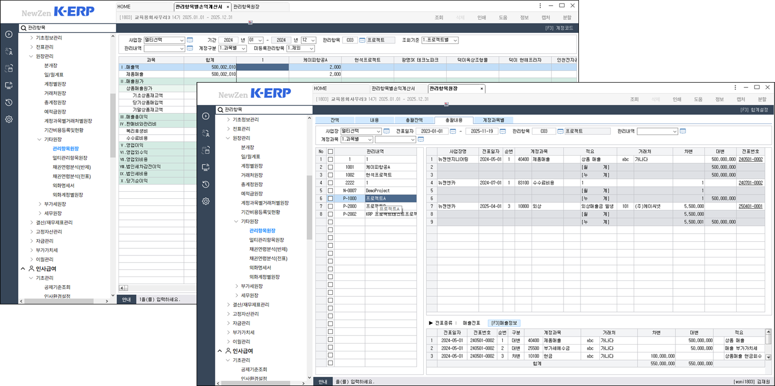 계정과목에 다양한 관리항목 설정을 통해 관리항목별 원장 및 재무제표를 관리할 수 있습니다.