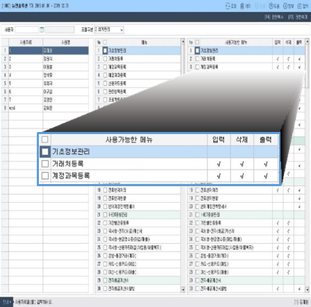 실 업무프로세스에 따른 권한을 프로그램에 그대로 적용하여 운영할 수 있습니다