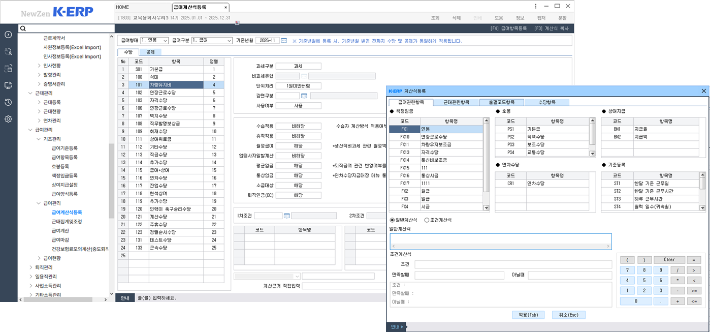 복잡한 수당 및 공제금액 산출을 계산식을 통해 쉽게 적용 및 이력관리할 수 있습니다.