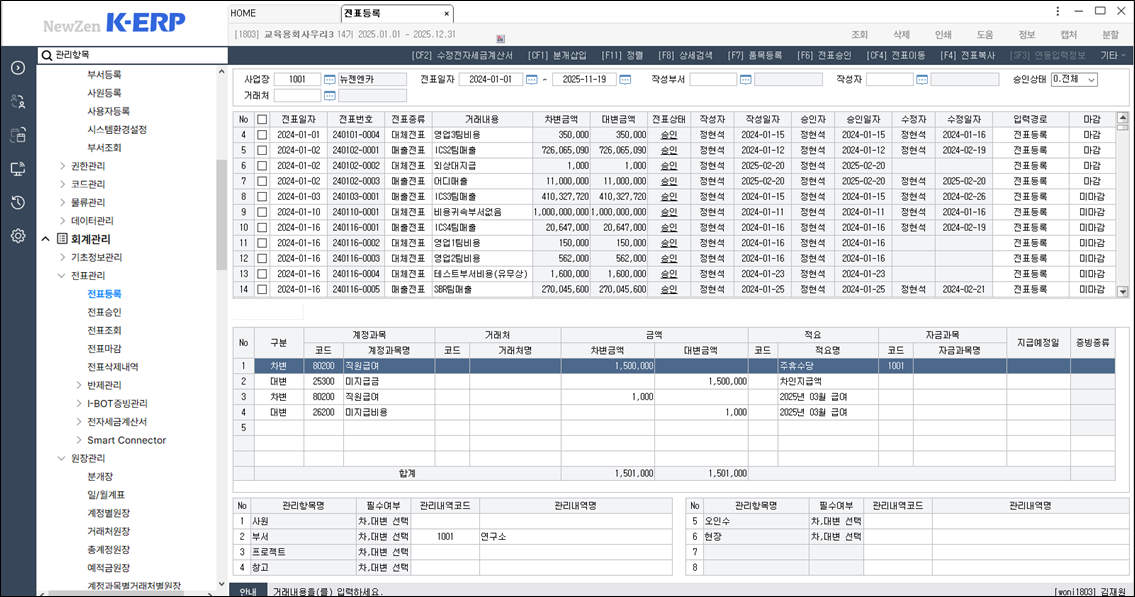 전표입력 권한에 따라 미결/승인전표를 관리하여 승인전표를 토대로 원장 및 재무제표를 관리합니다.