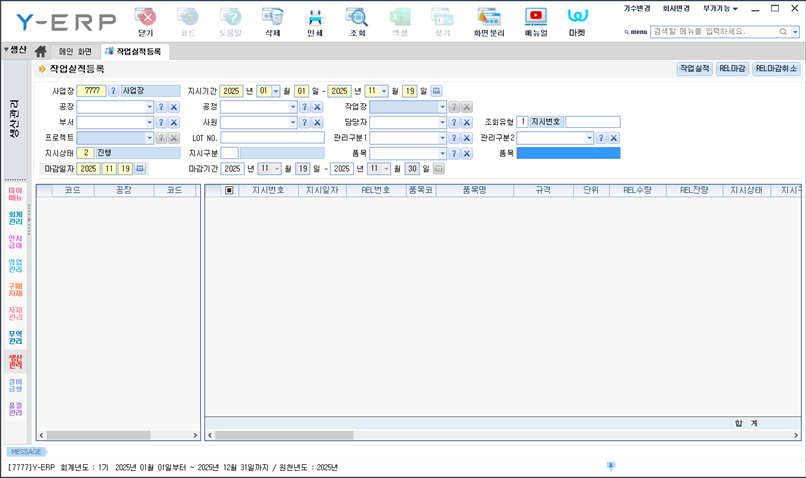 - 작업지시서를 통한 실적 바코드 생성, 리딩을 통한 실적 가능