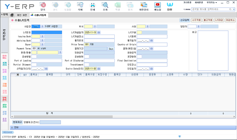 - 구매확인서, MASTER L/C, Local L/C 등 수출,수입 관리 가능